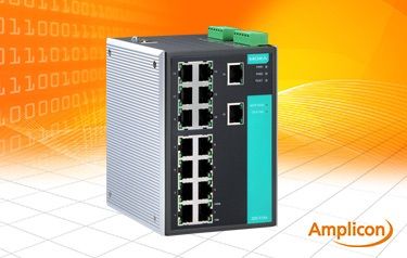 The Moxa EDS-516A advanced managed Industrial Ethernet switch provides up to 16 fast Ethernet ports with a combination of 10/100BaseT and 100BaseFX allowing redundant rings to be built with fibre optic support.