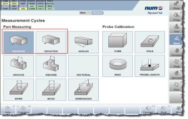 NUM’s probe measurement guidance option brings a new level of flexibility to CNC machine tool use. Its advanced capabilities include complex tasks such as measuring the width of a rib/web and the mid-point for a paraxial probing movement, measuring the diameter and centre of a bore or a boss by means of four points, measuring the angle of an oblique surface by probing along the third axis, and vectorial measurement of a bore or boss by three points.