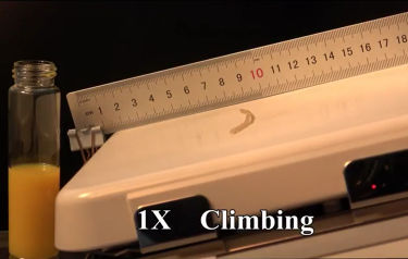 Once the robot forms a tubule, the contact from the hot surface induces a strain in the material, which causes it to roll in one direction. The driving force behind this motion is so strong that the robot can climb up a 20° incline or even carry a load 40 times its own weight. The length of the robot affects its velocity, with longer robots rolling faster than their shorter counterparts.