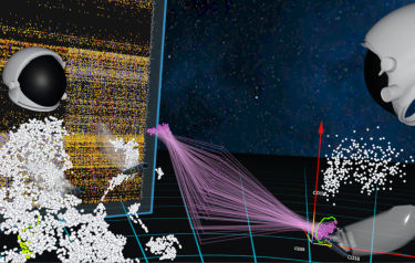 Using a VR headset, the user has a complete universe of cell populations in front of them, and can more accurately determine how cells relate to one another. Using two hand controllers, they can select cells of interest for further analysis with simple hand gestures as if they were physical objects.