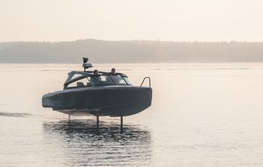 Its highly efficient pod motor, Candela C-POD, outputs 75kW/100hp for takeoff. Once 'foilborne', the C-8 flies efficiently, drawing only around 23kW/30hp continuously from its Polestar battery pack – whereas a similar-sized conventional boat would use around 120kW/160hp.