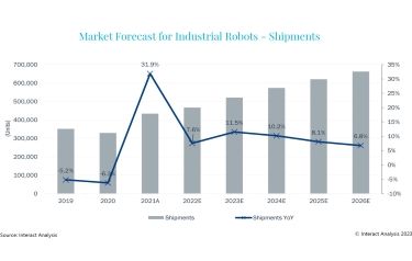 It is clear that the current economic climate is placing constraints on all markets. While the global industrial robot market enjoyed positive growth in 2022, it is far from the strong forecast made by Interact Analysis at the beginning of the year.