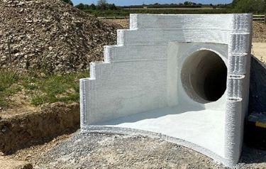 Headwall structures are normally made in limited shapes from precast concrete, requiring formwork and extensive steel reinforcement. But by using 3D printing, the team – including specialists from Costain, Jacobs and Versarien – could design and construct a curved hollow wall with no formwork and no steel reinforcement. The wall gets its strength not from steel, but from geometry instead.