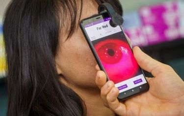 To enhance the visibility of the pupil, UC San Diego engineers equipped their smartphone attachment with a specialized filter that selectively permits a certain range of light into the camera. That range is called far-red light – the extreme red end of the visible spectrum located just before infrared light.
