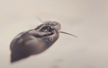The robot's design is based on the Hawaiian apple snail (Pomacea canaliculate), a common aquarium snail that uses the undulating motion of its foot to drive water surface flow and suck in floating food particles.