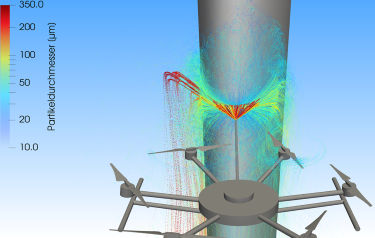 Dr. Oliver Tiedje, Project Manager at Fraunhofer IPA, and his team determined the technical parameters – for example, the required pressure, an efficient atomisation method and the optimum droplet size – using fluid dynamic simulations.