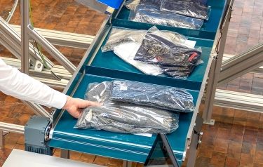 A business required a conveyor for picking items of clothing for order processing. Items from individual orders, plus shipping documents, needed to be fed to a manual workstation on a belt conveyor.
