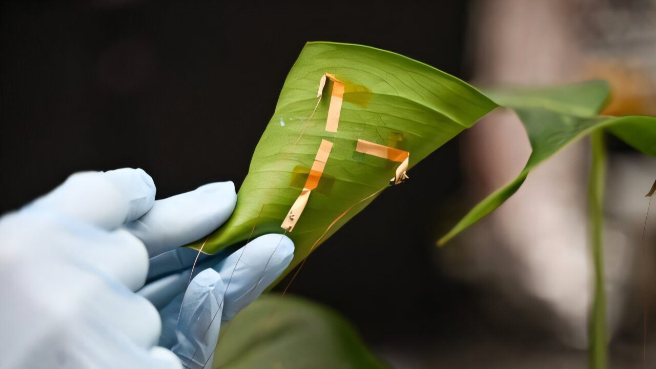 The researchers developed an electronic tattoo for leaves that uses the hyperflexible and sustainable material graphene to track hydration levels.